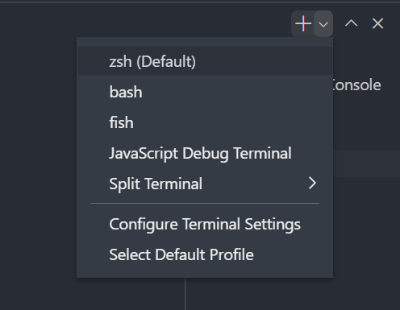 An integrated terminal is available with various shell options (zsh, bash, fish, etc.). Use the New Terminal button located at the right side of the Terminal panel. You can have as many as needed running in parallel and you can use split to display multiple at once.